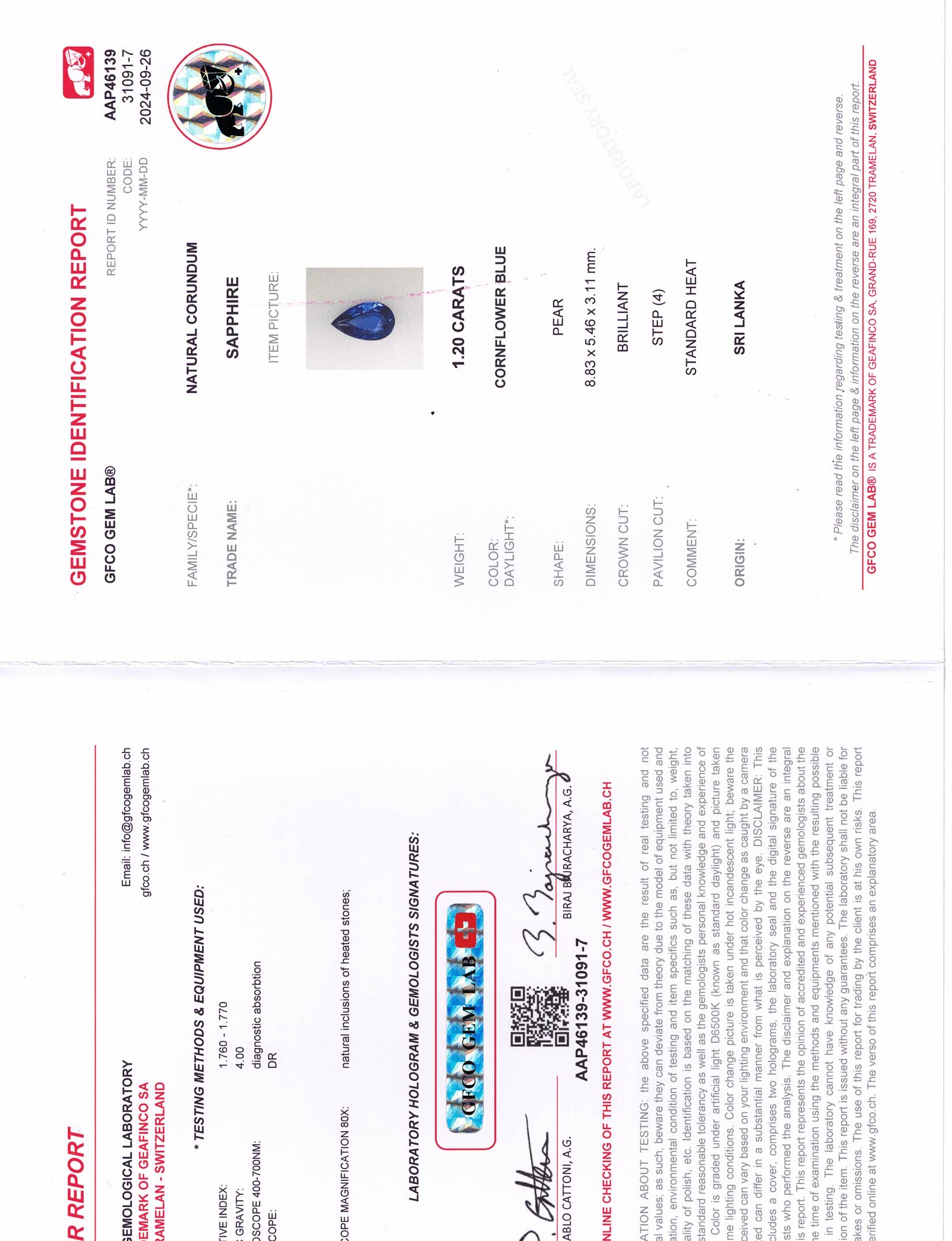 Blue Pear Shape Sapphire Sri Lanka H 8.8X5.4X3.1