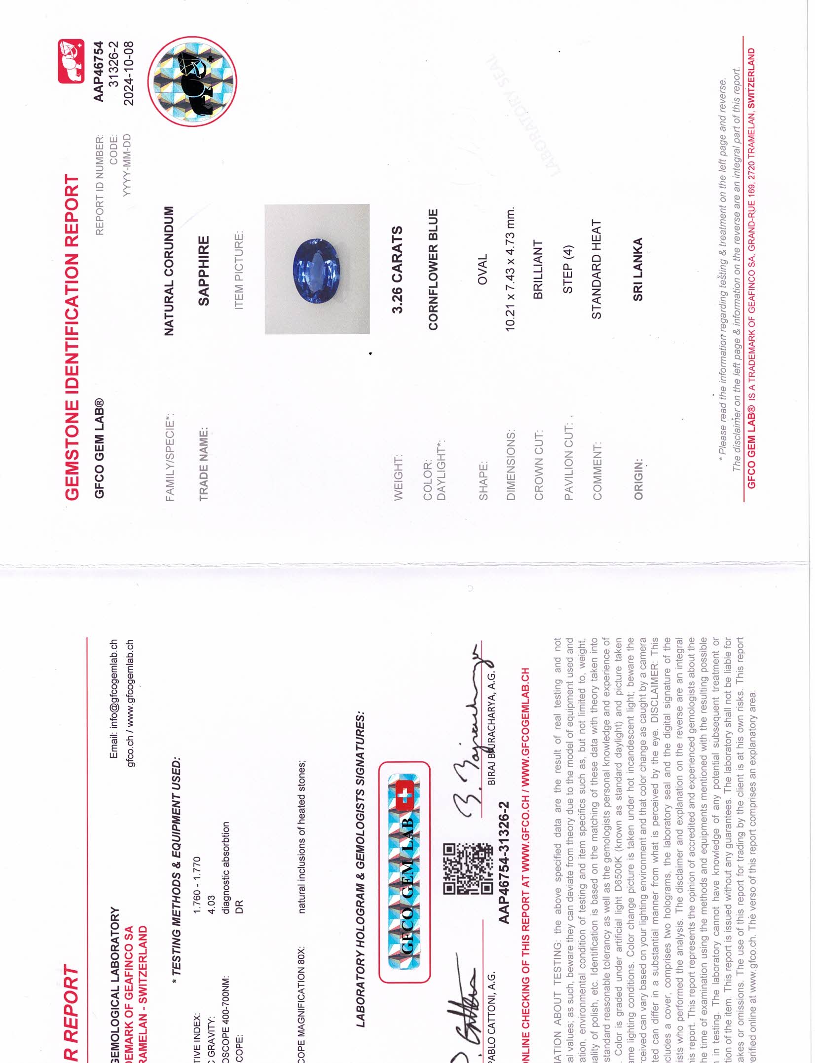 Blue Oval Sapphire Sri Lanka H 10.2X7.4X4.7