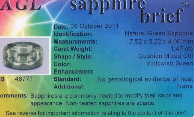 Green Cushion Sappphire Sri Lanka N 7.5X5.2X4.0
