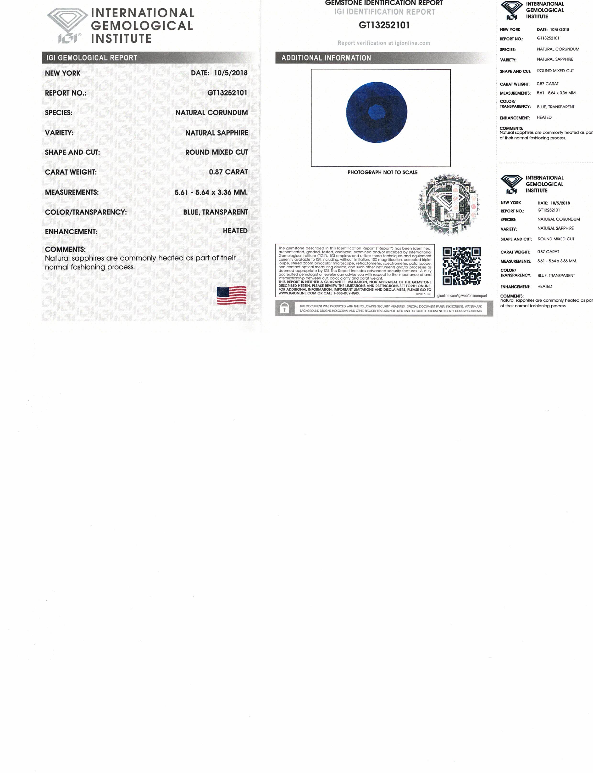 Blue Round Sapphire Sri Lanka H 5.7X5.7X3.3