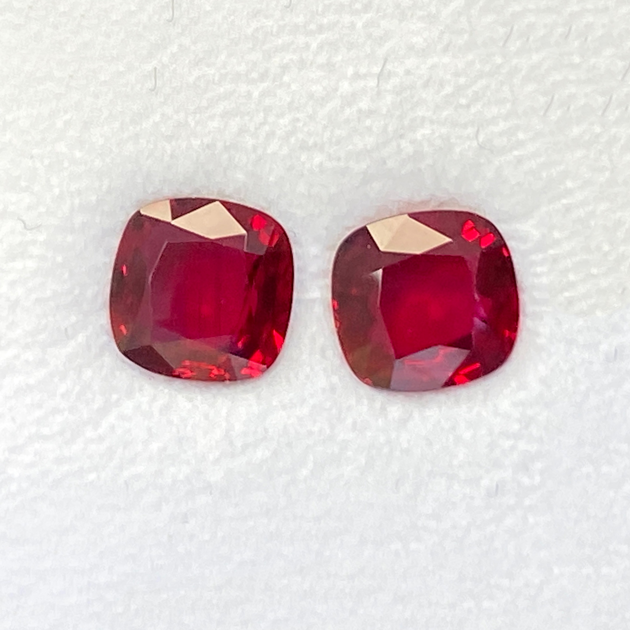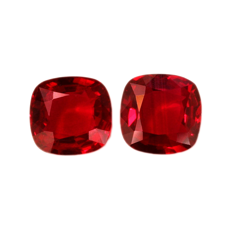 Red Cushion Ruby Pair Mozambique H 7.0X7.0X3.2