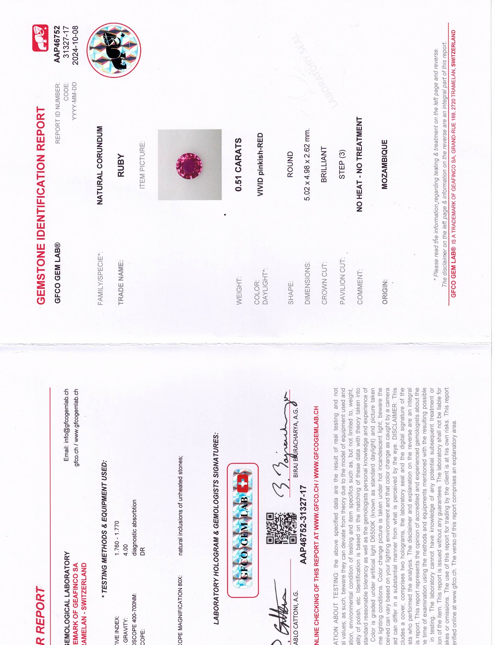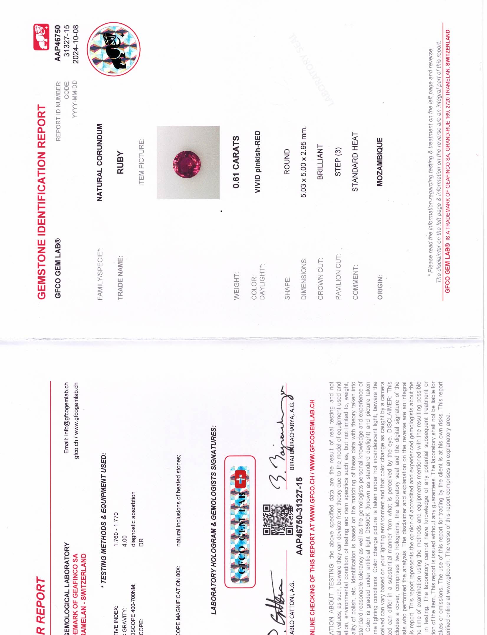 Red Round Ruby Pair Mozambique H 5.0X5.0X3.0